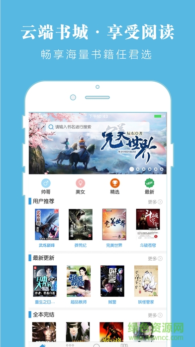 云端书城苹果版是一款深受受广大小说爱好者喜爱的小说阅读器,这款追书神器拥有海量的小说资源,天天都有免费资源为您提供阅读,喜欢的朋友不妨来绿色资源网下载体验一下吧!