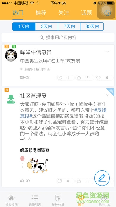 哞哞牛集团版app是一个专门用来管理奶牛的手机移动端管理平台!牧场工作人员可以实时监控牛群饮食、作息动态,并可以在线制作统计报表、进行内部交流等。需要的用户快来拿走吧!