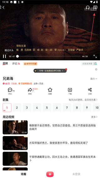 3、进入播放页面后,点击右上角的TV样式投屏图标,进入投屏页面。