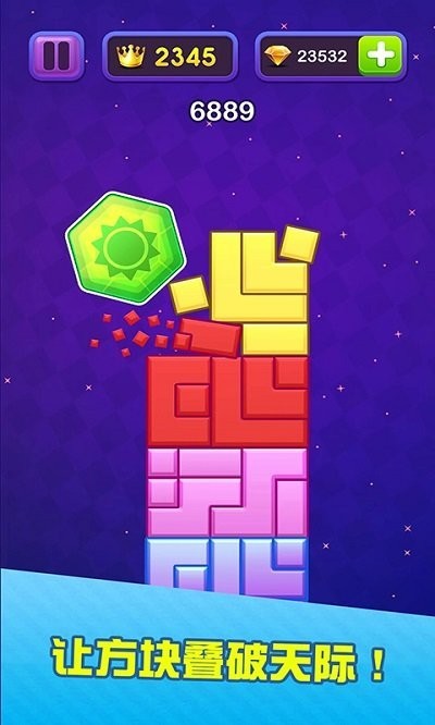 2、非常简单的游戏不断堆积高积木,你就可以挑战高分