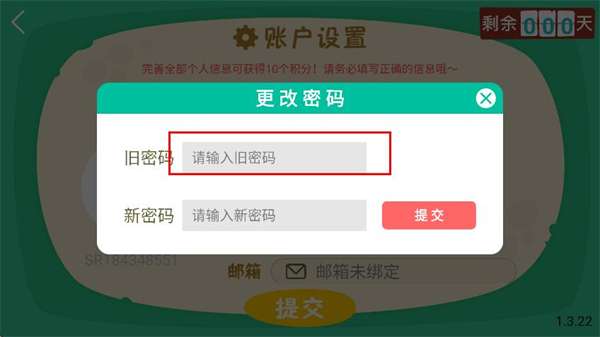 3、在更改密码弹窗中,点击输入框,输入旧密码。
