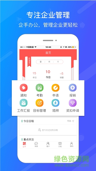企手办公是一款应用广泛的企业内部办公app,员工协作销售管理智能考勤报销申请等多种功能,精准办公更高效。快来绿色资源网下载体验吧!