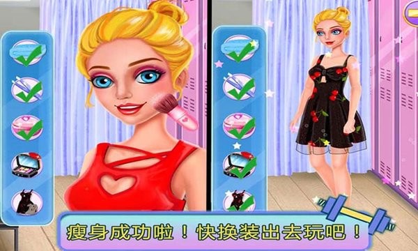 非常具有趣味性的手机休闲装扮类型的儿童小游戏。在游戏中玩家将帮助公主进行减肥运动,玩家可以使用各种运动健身器材帮助公主进行减肥运动,还需要合理的搭配健康的饮食,最后可以画个漂亮的妆。