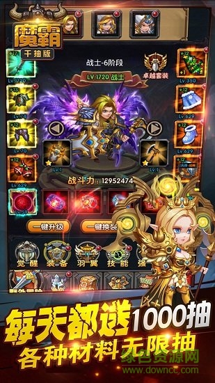 《魔霸千抽版》是一款致敬魔兽题材挂机策略手游。每天赠送1000连抽,游戏玩法丰富,各种经典魔兽副本悉数完美还原!T1,T2等套装也让你能重温那个经典的年代!暴力修改,游戏免费赠送大量钻石,每周免费送钻石,特权商城材料免费买,月卡每天送20w钻石,副本狂掉材料,一样玩,花点小钱爽翻天!