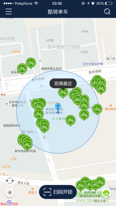 2、随时随地,一键找车。打开骑呗单车APP,即可找到身边的骑呗单车