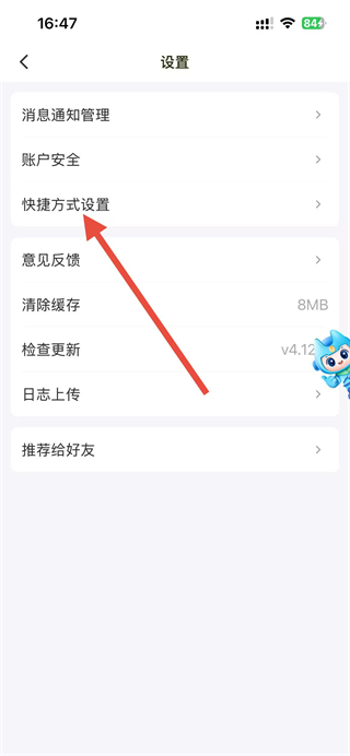 3、在设置界面,找到快捷方式设置选项并点击,进入快捷方式相关的配置页面。