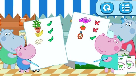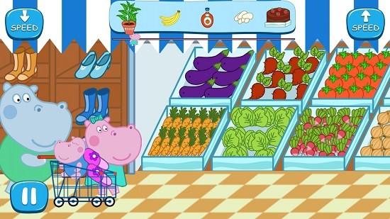 这是一款儿童早教益智软件。(儿童免费3岁-6岁)。宝宝可以和爸爸、妈妈、还有调皮的弟弟一起逛超市。