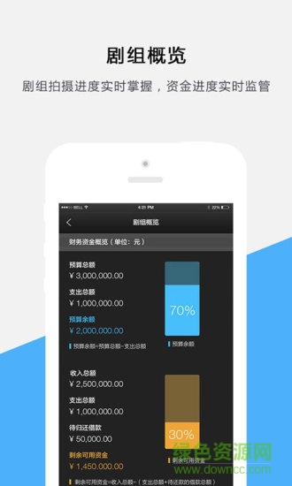 2.新增【剧组概览】,剧组拍摄进度实时掌握,资金进度实时监管,拍摄进度与财务资金进度趋势对比;