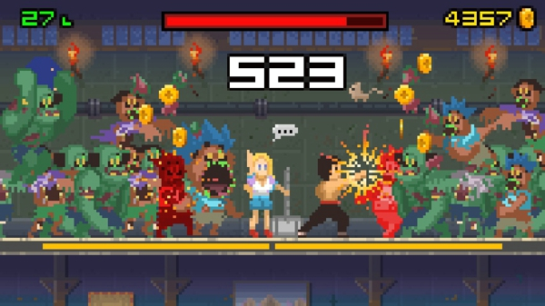 * 按左/右屏幕出招干掉僵屍, 避免僵屍攻击公主