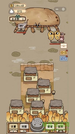 3、玩家打败怪物可以收获面包机,为面包英雄进化或者创造更多英雄
