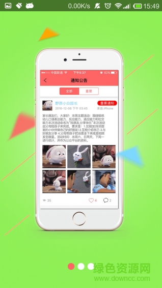 1、基于幼儿园家长老师的熟人私密社区。帮助老师和家长保持紧密联系
