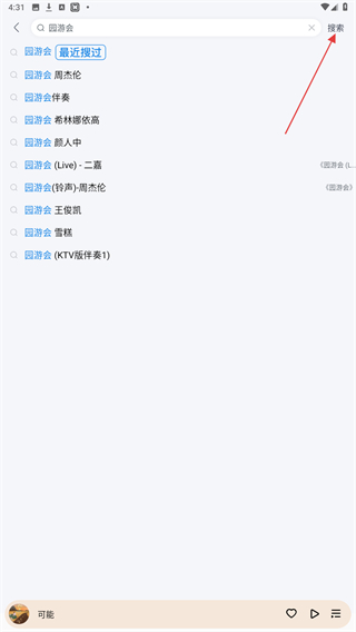 2、在搜索框内输入歌曲名称后,点击搜索的按钮。