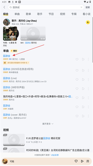 3、当搜索结果出来后,点击下方对应歌曲即可。