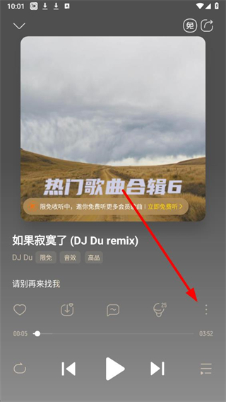 2、在歌曲播放详情页面,点击下方更多按钮,展开功能菜单。