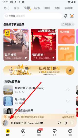 1、打开酷我音乐盒app,点击底部播放栏,进入歌曲播放详情页。
