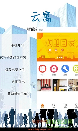 云寓app是一款由杭州电堂科技有限公司推出的智能公寓管理手机应用软件。平台提供专业的智能连锁公寓管理软硬件一体化完整解决方案,通过手机app能够管理房门门锁,看房,收租等问题,非常方便使用。还等什么,赶紧下载吧。