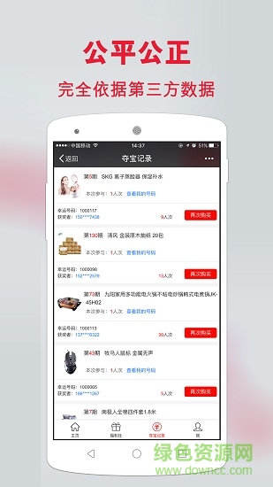 求运气夺宝是一款大型的趣味活动购物app。专注于移动端的众筹购物方式,用户可以通过玩游戏或支付1元获得带走千元大奖的机会。多种多样的热门商品,惊喜随时等你来。一元云购全球,在这里只需一元钱就可实现你的购物梦想,从高档手机到生活用品,商品应有尽有。求运气夺宝app采用了公平公正公开的抽奖规则,无论你是高富帅还是白富美,让每个人都站在同一起跑线。还可以分享给好友,邀请好友一起来玩游戏!