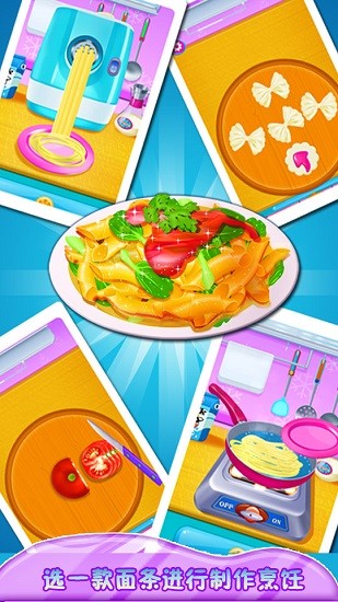 制作意大利面游戏手机版中玩家可以模拟制作意大利面,有逼真的面条机制作面条,有西红柿、西蓝花、小白菜等众多配菜,可以洗菜切菜,众多厨房电器可以使用,欢迎感兴趣的朋友下载体验!