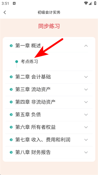 3、在科目练习选择的页面,选择考点练习,弹出练习的详情。