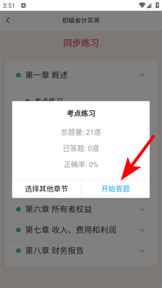 4、在练习详情弹窗中,点击开始答题,进入刷题页面完成练习。