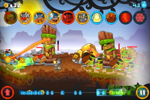 游戏有故事CAMPAIGN和SKIRMISH两个模式,前者是按照阵营的不同来挑战不同的路线(过关的条件会有消灭敌人、坚持防守一定的时间之类的),后者则是自行选择阵营和设置战场参数,来进行战役游戏。玩家可以根据自己的喜好选择进行挑战。游戏还支持CRYSTAL和Game Center,可以查看游戏成就和成绩排行榜等内容。