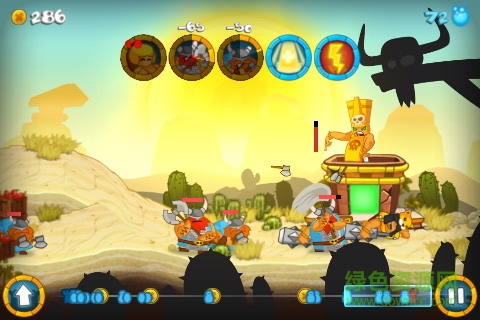 《Swords and Soldiers》,保持了其他版游戏的2D横板画面形式,维京海盗、阿茲特克人和中国这三个游戏中的主角阵营,也得到了完整的再现。同时游戏搞笑的人物和剧情也得到了很好的保留,看着海盗、阿兹特克人和中国武者在自己手中的小i里上演一场场激烈而有趣的战争,感觉相当不错。终于战斗时候的效果,这款游戏也有着相当好的表现。从近身攻击到远程及特殊攻击,以及各种不同阵营独有的兵种和魔法攻击效果,都使得整个战斗的过程相当刺激。音乐方面,游戏保持了很好的水准,每个阵营都会有具有自己风格的曲子。不过在改进上就没有什么令人眼前一亮的地方。