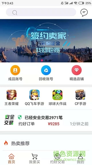 约好交易app是一款正规的游戏交易平台,支持众多热门游戏账号在线交易,平台担保交易安全可靠,精选店铺优质卖家,不怕欺诈行为,并且提供良好的售后服务,欢迎来绿色资源网下载!