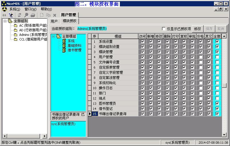 4. NiceMIS是多用户并发系统,可以对用户授权控制,实现不同的管理需求。