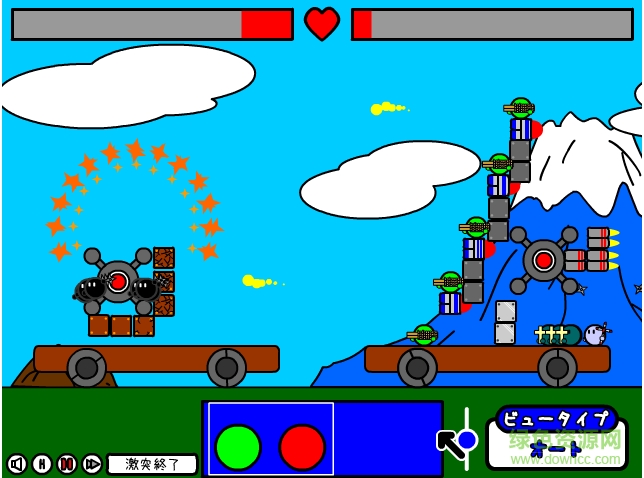一款可以分享你的战果的策略守城游戏!买兵买防卫放在合适的位置,建立自己的移动要塞,抵御敌人的入侵并击毁敌人的中心机器,可以跟电脑对决和跟其他玩家对决!右边有兵种及防卫,买好按右下角开始观战,不成功按左下角字重置。这次的激突要塞2增添了武器和兵种,金钱也增加到1500,玩家可以更加自由的选择关卡开始自己的游戏。