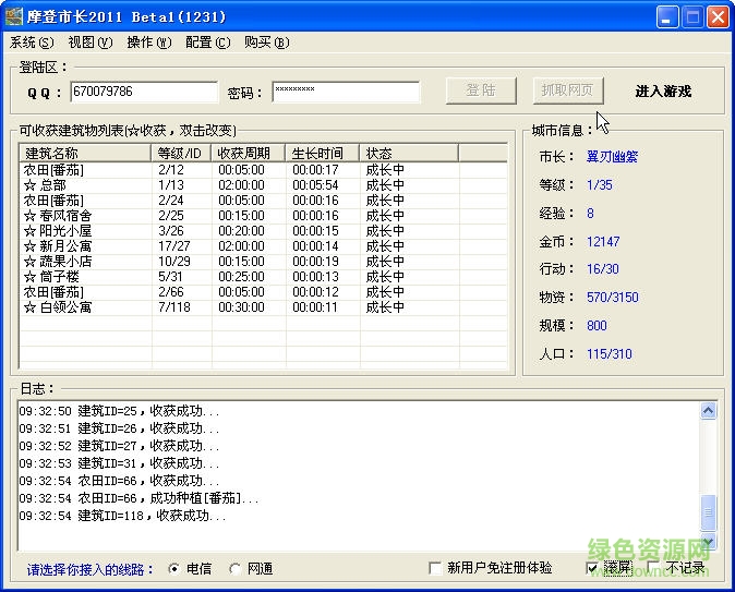 自动帮助好友收钱 自动签到 自动收产量设定值的住宅 自动种植各种菜
