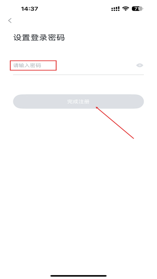4、进入设置登录密码页面,填写密码后点击完成注册按钮,即可完成账号注册。