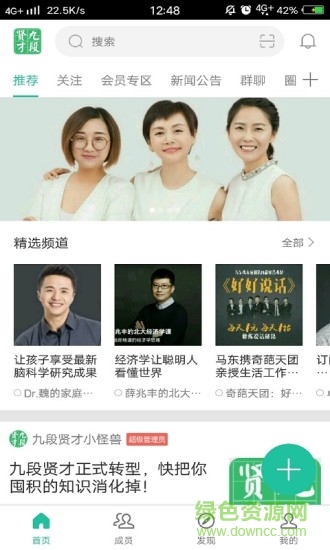九段贤才app是一款知识共享平台软件,汇聚众多爱知识爱学习的成员,包含fm频道、积分阅读、群聊等板块,图书资源丰富,用户可以通过该平台在线学习知识,需要的朋友快来下载吧!