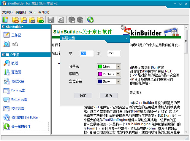 SkinBuilder是一款专业的程序皮肤制作工具。它是 vclskin 的图面皮肤编辑器,一套完整的C++ Windows 平台的GUI开发的SDK,能完全自动的为您的应用程序添加支持换肤功能,甚至不需要更改您的设计好的Form以及添加一行代码。对于基本的WIndows平台应用程序开发而言该软件的功能已经足够了。异常方便的让现存的工程支持换肤,不需要改变现有工程和代码。方便的在皮肤界面与原始Windows风格界面之间切换,支持将一个或多个皮肤文件编译到EXE文件中提供SkinBuilder 工具完全支持MDI风格界面。