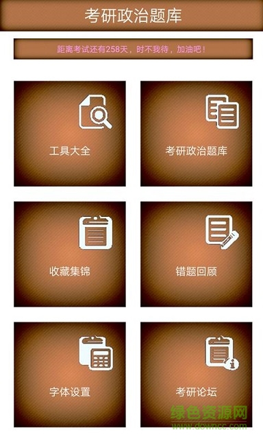 考研政治题库是一款最新最全的政治题库。包含选择题题库多选题题库,主观题答题技巧和答题模板和最全的真题。而且用户们也能直接在线进行模拟考试训练,有需要的朋友就快来绿色资源网下载使用吧!