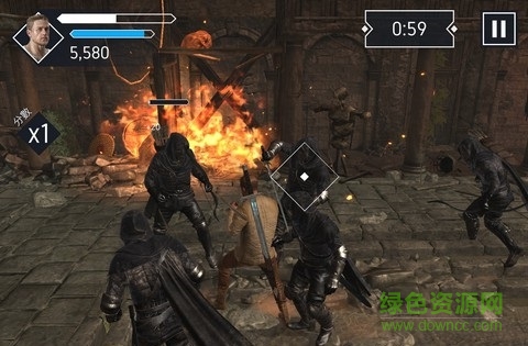 游戏在操作上采用了非常适合手机操作的点划式操作,玩家只需在敌人身上点击并滑动就能够释放出相应的招式,总的来说游戏的打击感十分出色,拳拳到肉相当刺激。而与此同时,我们也可以通过关卡末尾奖励的点数来进行技能的学习,从而掌握更多的攻击方式。每一种攻击方式都能够产生连击效果,处于该效果之下能够帮助玩家打出更高的分数。当然除了激烈的对战内容之外,游戏也加入了一定的QTE元素,当主人公通过连击积攒能量之后,就可以出发神圣状态,在这个状态当中玩家的武器会由拳头进化为长剑,这把剑能够秒杀敌人,我们只需要轻轻在对方身上划上一刀即可。因此前期的连击尤为重要。