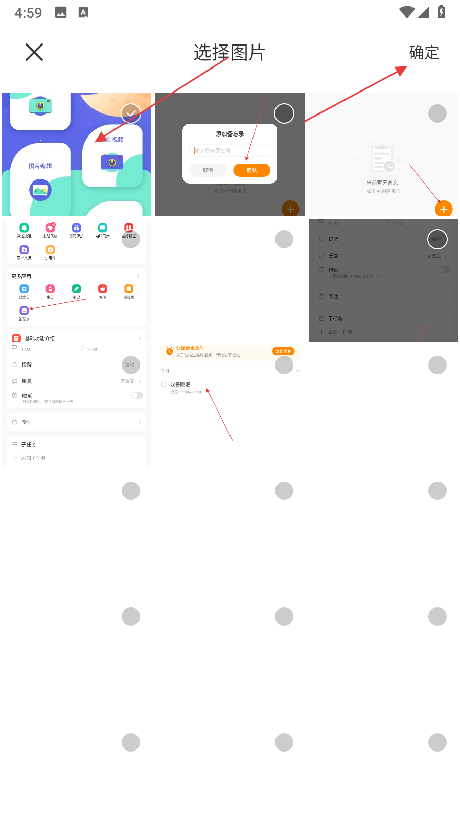 2、从手机相册挑选待编辑图片,或直接拍摄新照片,选好图片后点击右上角确定。