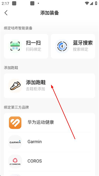 2、进入“我的”页面后,点击添加跑鞋/智能装备选项。