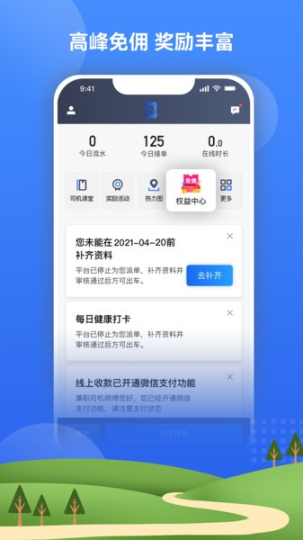 使用本应用时需要打开GPS定位、麦克风、相机、通知栏权限才可进行接单服务。