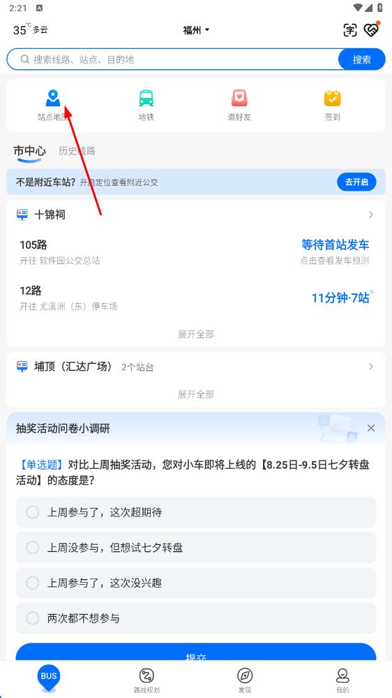 3、成功开启定位权限后,软件将基于定位显示附近公交站点、线路信息,方便查询公交实时动态,规划出行 。