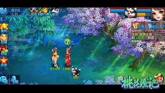 进入游戏中,大家将从青云村开始《桃花源记》的旅程,跟着主线剧情前行,会结识新手村的各路人马,途经桃花缤纷的燕子坞,来到热闹繁华的洛阳城,领养一只忠诚的灵兽旺财,结识了本领高超的各位伙伴,等级也是快速飙升。