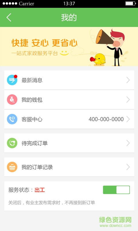 嗨家政雇工是一款方便大家寻找家政工人的一款app,非常方便的一款app,还在因为忙没时间打扫屋子,因为找不到家政工人而烦恼吗,快来绿色资源网下载嗨家政雇工吧!解决你一切的烦恼。