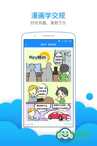 云车行,国内首家采用漫画形式来学习交通规则的安全教育类App,致力于构建安全文明和谐的交通出行环境。主要围绕科目一、科目三驾驶理论知识进行在线学习,每节课将会以全新的漫画形式进行展示,人物生动活灵活现、寓教于乐,让学习变得更轻松,同时每节课还会有同步测试题,方便学员进行课程总结及知识巩固。