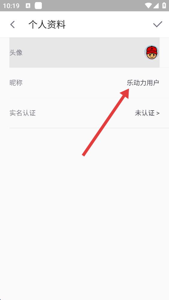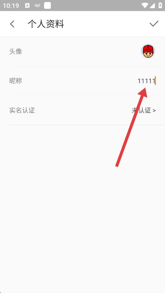 3、在个人资料页面里,点击昵称选项右侧的原昵称内容。