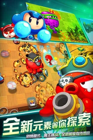 2.在继承原有特色的同时,全新的手游版《泡泡堂》自然少不了加入时下的流行元素,Q版的休闲画风更贴近当今时代的玩家审美;全新的剧情模式和新元素也有区别于PC端的原创特色。