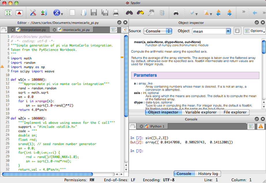 Spyder的功能比较多,这里仅介绍一些常用的功能和技巧: