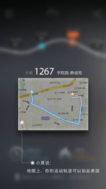莫比动力,专供上班族的运动计量软件。计步、跑步、停留不同状态分类记录;设定目标,无需唤醒,流光轨迹自动汇总每日运动量;情怀式分享,让白青小伙伴们惊叹你的逼格。你的运动在每天的生活轨迹中闪闪发亮,等你与小莫一起发掘。