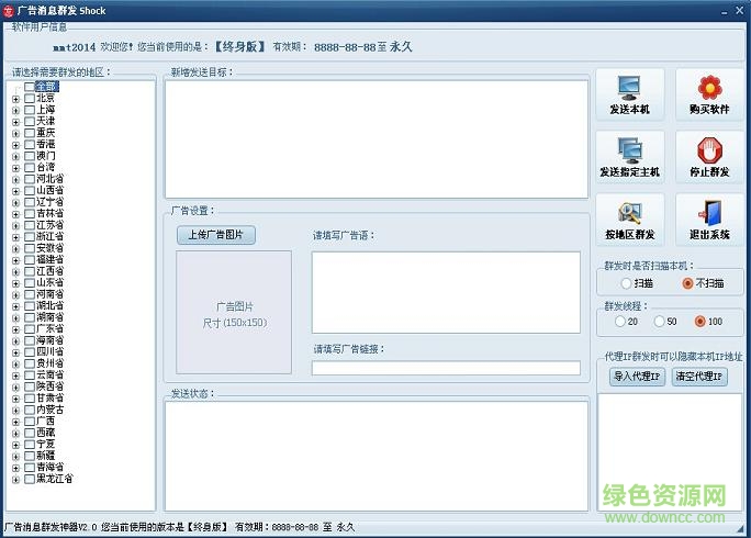 广告消息群发神器是一款非常不错的专业的广告群发器,使用这款软件你可以非常迅速的将自己需要推广的信息给群发给你的好友没,方便快捷,并且这款软件是完全免费的不需要动多少脑筋就能够将你的信息发送出去,是推广工作者必备的软件。有需要的朋友欢迎来绿色资源网下载使用。