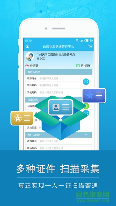 为快递员或物流工作人员揽件时,自动识别寄件人的身份证、驾驶证、护照、港澳台等多种证件的信息,而无需手工输入。实现多证种快速采集,减少采集时间,提高工作效率。