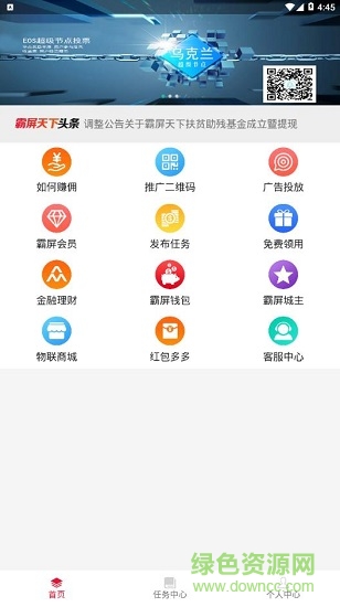 霸屏天下app安卓版是一款平台分享营销平台,用户通过自己方式经行平台投放广告的分享获取相应的收益,还可以邀请好友一起参与,玩法多多赚的更多,快到绿色资源网下载吧!