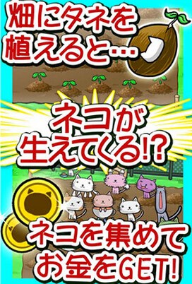 本作是一款通过在不思议的田地中播种猫咪种子,然后培育种子等它们长成一只只小猫的育成游戏!收获小猫获得金币还可以去强化装置,培育出更多不同种类的猫哦!除了可以种猫外,玩家还可以在游戏的“自己的房间”中与猫咪们一起玩耍,配置各种家具和猫咪们一起拍照分享。